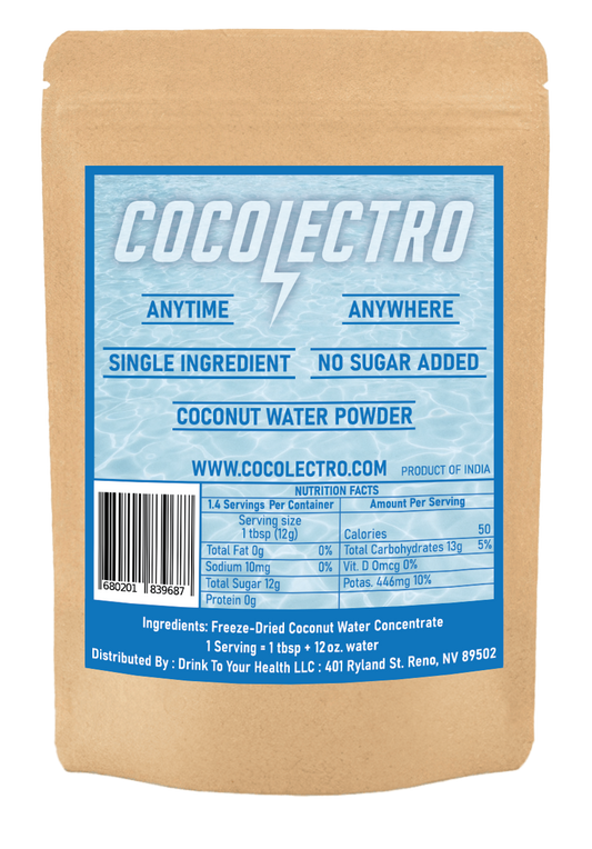 We use the highest quality organic coconuts harvested at peak ripeness and immediately freeze dried to lock in all the vital flavor and nutrients. Just add water you'll enjoy the freshest and best tasting coconut water available. Unlike the bottled stuff thats been wasting away for months, CocoLectro captures the true essence of fresh coconut water. That's why we have been loved and trusted for years!